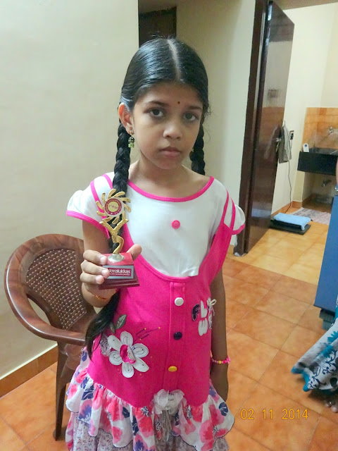 ரோஷ்ணி இப்போ படங்கள் வரைவதில் ரொம்ப முன்னேறி இருப்பது, அவுங்க அம்மாவும் அப்பாவும் தங்கள் பதிவுகளில் போட்டு வைக்கும் படங்களே சாட்சி. பள்ளிக்கூடத்தில் ஆர்ட் க்ளாஸில் ,அதுக்கான விசேஷப்பரிசு கிடைச்சுக்கிட்டு இருக்கு!
