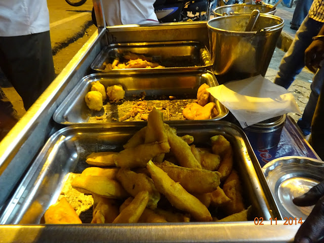 காஃபி வரக் காத்திருந்த ஒரு நிமிசத்தில் கைவண்டி ஒன்னு என்னாண்டை வருது. பஜ்ஜி வாசனையோ மூக்கைத் துளைக்குது. சடார்னு திரும்பிப் பார்த்தால் மூணு ட்ரேக்களில் பஜ்ஜி, போண்டா, அப்புறம் மிளகாய் பஜ்ஜின்னு நினைக்கிறேன். கூடவே பக்கெட்டுகளில் சட்னி வகைகள். ப்ச்... வடை இல்லை பாருங்க:(