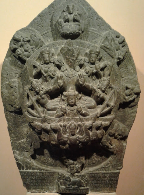 Hevajra சிலை ஒன்னு பார்க்கவே பிரமாதம், நாலு தலைகளும் பதினாறு கைகளுமா !!! இந்தப் பக்கங்களில் தாந்த்ரீக முறை உபாசனைகள் நிறைய இருந்துருக்கு போல. பௌத்த மதத்தில் வஜ்ராயணா பிரிவில் இவரை பல விதமான உருவங்களில் ஒரு தலையில் இருந்து எட்டு தலை வரை விதவிதமா வரைஞ்சும் சிற்பமாகச் செதுக்கியும் கும்பிட்டுக்கிட்டு இருக்காங்க.
