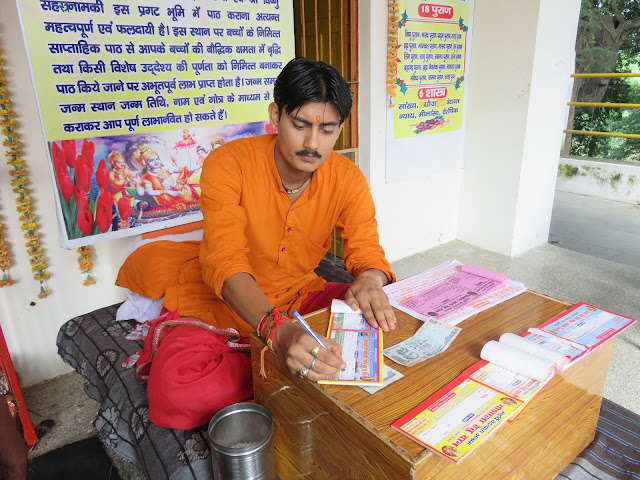 பக்தர்களின் வசதிக்காக ஒரு ஐம்பத்தியோரு அறைகள் இருக்கும் கட்டடம் கட்டப்போறாங்களாம். ரொம்ப நல்ல சமாச்சாரம். எல்லாம் தனியார் ஆஷ்ரமங்கள்தான் செய்யறாங்க. இது இல்லாம இன்னும் சில கோவில்கள், சந்நிதிகள்னு பெரிய திட்டம் இருக்கு. நன்கொடை வசூல் அஞ்சு லக்ஷம் தொடங்கி.... அதுபாட்டுக்குப் போகுது. நாம் ஒரு தொகை கொடுத்தோம். ரொம்ப சந்தோஷமா அதை வரவு வச்சுக்கிட்டு ரசீது கொடுத்தார் அஜய் சாஸ்த்ரி. அவரையும் ஒரு க்ளிக் :-)