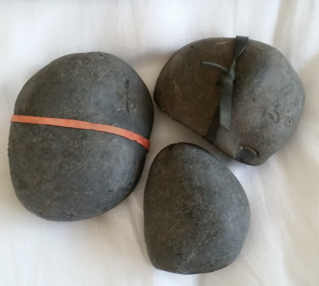 சின்னதா கோலிகுண்டு சைஸோ, 'சென்னையில் கிடைக்கும் எலுமிச்சம்பழம் சைஸோ'இருந்தால் அது முழுசாத்தான் இருக்கு. கொஞ்சம் பெரிய கற்களைத்தான் உடைச்சு வச்சுருக்காங்க. அதையும் ஒரு நறுவிஸா நீட்டா உடைக்கப்டாதோ........ இன்னொரு கல்லை வச்சு உடைக்கிறாங்க போல.... கண்டக்கா முண்டக்கான்னு உடைஞ்சுருக்கு :-( ஆனாலும் ரெண்டையும் சேர்த்து வச்சாக் கச்சிதமா பொருந்திக்குதுதான். ஜோடி பிரியாமல் இருக்க ரப்பர் பேண்ட் போட்டு வச்சுருக்காங்க.