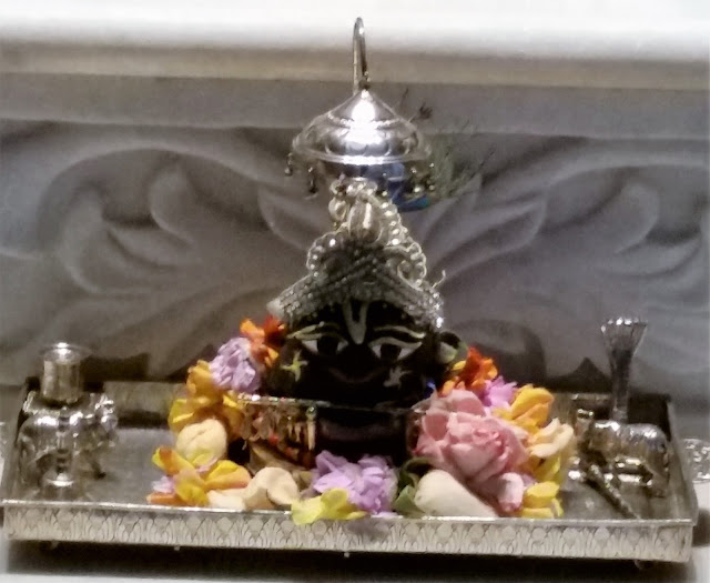 நம்மூர் ஹரே க்ருஸ்னாவில் சாளக்ராமம் வச்சுருக்காங்க. அலங்காரம் அழகா இருக்குல்லே? ஒண்டியா இருப்பதன் சௌகரியம் அது. நம்மூட்டுலே நாலு என்பதால்..... பார்க்கலாம்...... அடுத்த பயணத்தில் எதாவது வாகா அமையுமான்னு :-)